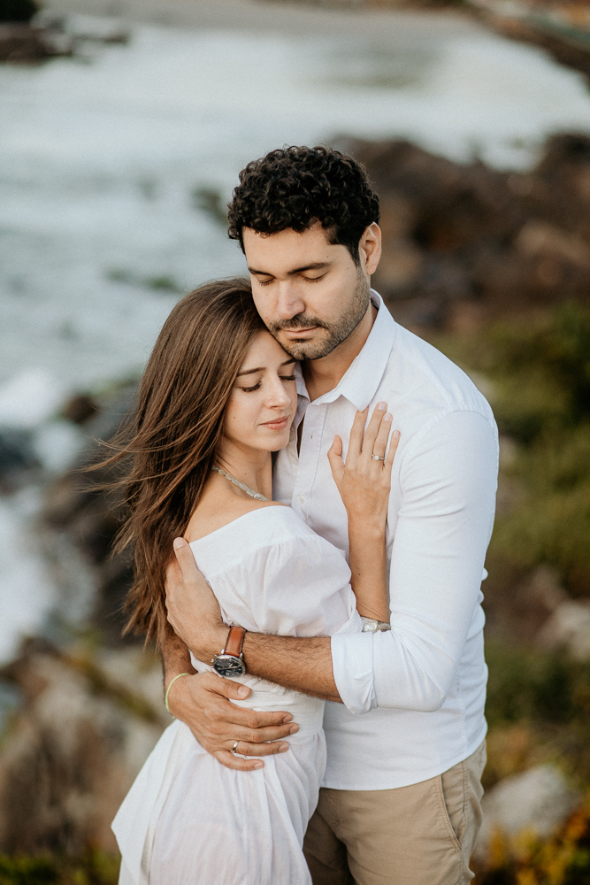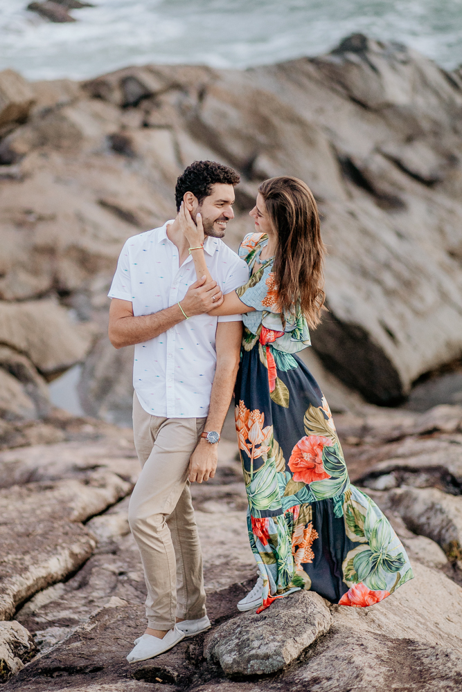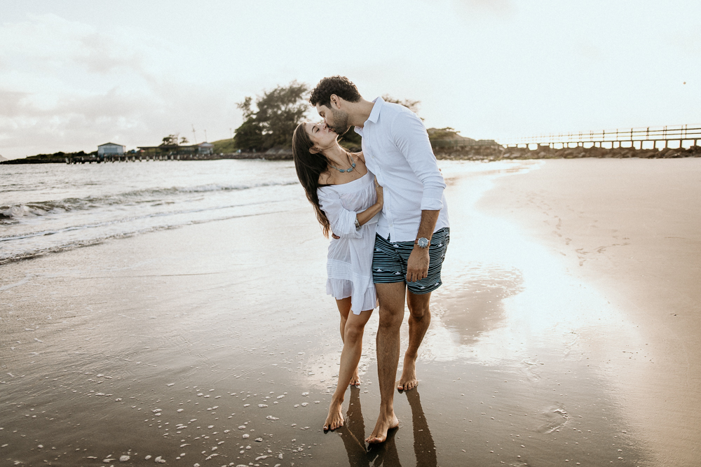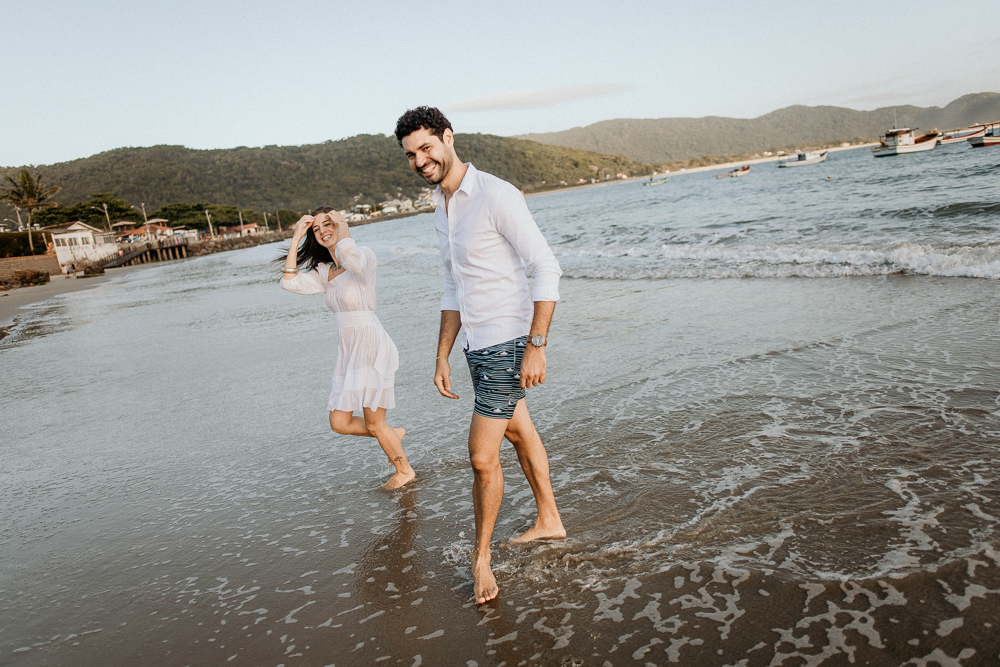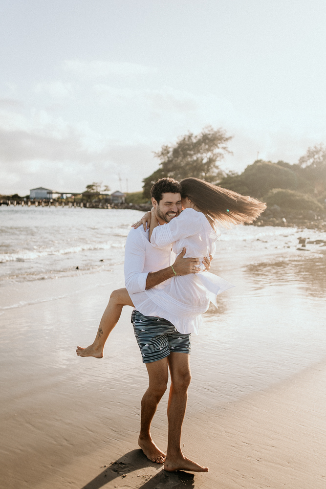 Acho que deu certo. O dia colaborou, pegamos uma luz linda e o local é um dos meus preferidos, a praia da armação no sul da ilha. O casal então... nem se fala, aquela conexão perfeita. Uma combinação que eu amo de casal bonito e cheio de disposição, topando as ideias, dando outras... Assim fica fácil de trabalhar!!
